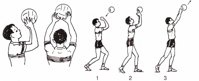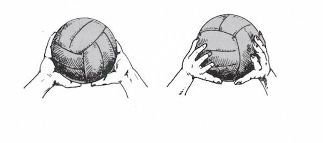 Hai tay của người chơi đưa lên cao chếch trước trán. Khi đó 2 ngón tay cái choãi ra kết hợp với 2 ngón trỏ tạo thành hình tam giác. Đồng thời các ngón tay còn lại mở rộng và hơi khum lại sao cho hai bàn tay tạo thành hình túi để đón bóng.